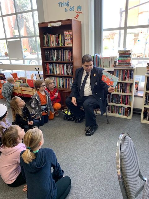 FIREMAN JOE HILES, NOW WOODSTOWN MAYOR MEETS WITH CHILDREN TO DISCUSS FIRE SAFETY IN THE HOME.